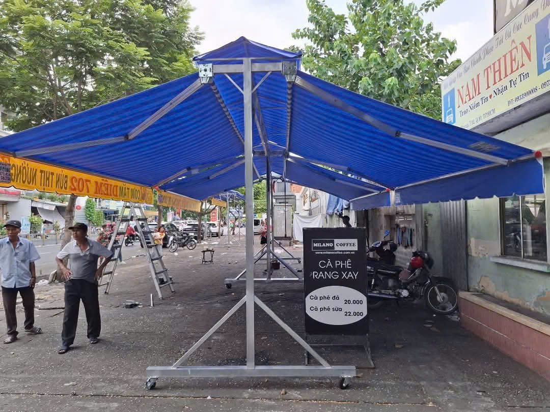 Thay vì xây mái cố định bằng bê tông, nhiều hộ gia đình và chủ kinh doanh đã lựa chọn mái hiên – mái xếp di động nhờ ưu điểm: dễ dàng thu gọn khi không cần dùng, chi phí hợp lý và tăng tính thẩm mỹ cho không gian.